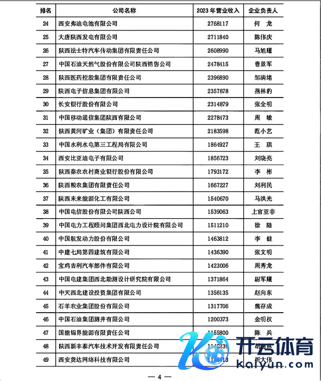 2024年12月音讯:“2024陕西100强企业”正经发布。本年榜单入围门槛为30.36亿元,同比下滑13.63%。商业收入总和33285亿元,同比增长 8.26%,但增速有所回落,低于近十年来8.28%的平均增幅。有54家企业营收朝上100亿元,与前年捏平;其中有8家踏进“千亿俱乐部”,比上年增多1家。