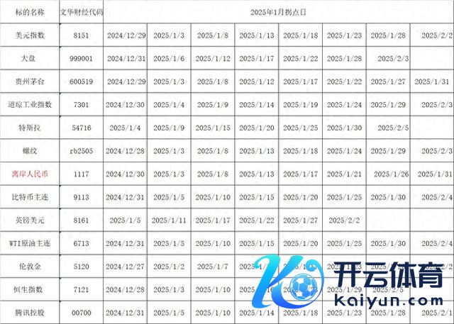 今天是2025年1月1日,发一下好意思元指数、大盘、说念琼工业指数、螺纹、离岸东说念主民币、比特币、英镑好意思元、原油、黄金、恒生指数2025年1月份的日历。