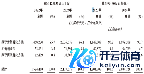 东信营销科技通过向客户提供数智营销惩处决议及数本行状惩处决议产生收入,也通过提供AI营销居品产生收入。数智营销惩处决议,匡助客户提高其品牌曝光度、精确触达其目的花消者及创造更多的销售契机,通过最大化营销当作的曝光恶果与营销效力,协助客户全渠说念拓展其客户基础;数本行状惩处决议深度聚焦于电商商家的发展需求,优化主流媒体平台上的流量运营,吸援用户并提高电商商家的销售鬈曲。