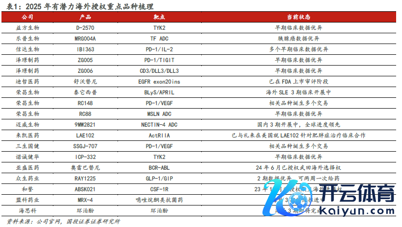 另外,国投证券研报示意,2025年多个国产改动药的国外授权值得期待。改动药出海大布景下,咱们以为2025年多个国产改动药的出海值得期待,举例益方生物TYK2 阻拦剂D-2570、乐普生物TF ADC MRG004A、信达生物PD-1/IL-2 双抗IBI363、泽璟制药PD-1/TIGIT 双抗ZG005 与CD3/DLL3/DLL3 三抗ZG006等。