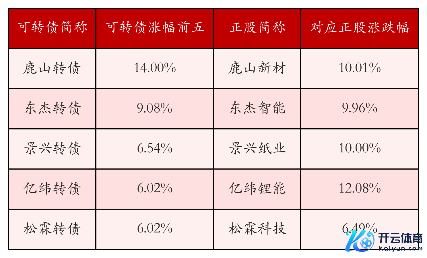 南财智讯9月3日电,南财金融结尾盘后数据流露,债市方面,中证转债指数收涨0.26%,报469.74,成交额为757.34亿元。可转债方面,本日共成交436只能转债,其中255只收涨开云体育,0只收平,181只收跌。具体来看,18只能转债涨幅跳跃2%。其中鹿山转债(113668)涨14.0%,东杰转债(123162)涨9.08%,景兴转债(128130)涨6.54%。本日有24只能转债跌幅超2%,高测转债(118014)跌9.38%,微导转债(118058)跌8.55%,金轮转债(128076)跌8.07%。存在交游量的可转债所对应的正股中,67只收涨,1只收平,368只收跌。具体来看,7只能转债对应正股涨幅跳跃5%,其中,鹿山新材(603051)涨停,收涨10.01%;景兴纸业(002067)涨停,收涨10.0%。同期所对应的可转债:鹿山转债(113668)同涨14.0%;景兴转债(128130)同涨6.54%。本日有17只能转债对应正股跌幅跳跃5%,中天火箭(003009)跌停,收跌10.01%。同期所对应的可转债:天箭转债(127071)同跌3.06%。