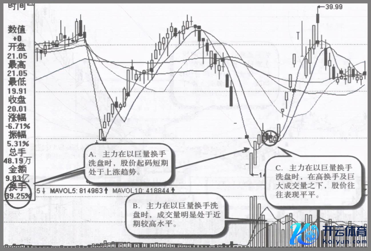 巨量换手往往是主力收场快速洗盘的方式,是指当股价在高涨历程中,斯须出现格外大于正常的成交量,并出现了较高的换手率时,讲明主力在欺诈高换手高成交进行快速洗盘。此时最隆起的特色是,在高换手与强大成交量的情况下,股价却进展平平。