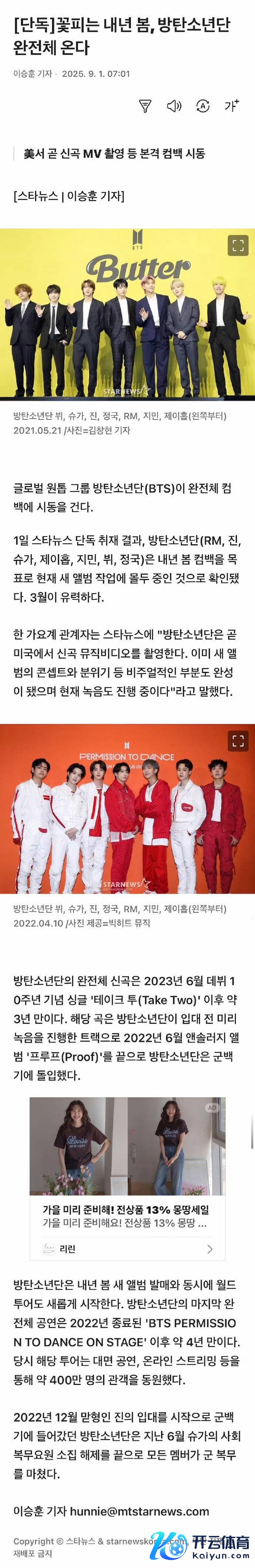 此次回来可不是浅显的新歌发布。据HYBE里面音问,除了3月底的新专辑开云体育,成员们还将初始历史范围最大的全国巡演,北好意思场次平直锁定30+,比2019年LoveYourself巡演多出整整12场。更让东谈主破防的是行程表上的“首尔安可场”,阿谁已经见证《Dynamite》初舞台的蚕室主竞技场,此次要连开五场,门票预售通谈刚洞开就被挤到系统瘫痪。有老粉晒出2013年出谈showcase的票根感触:“从弘地面下进修室到各人流露场,我的芳华原本一直有他们陪着。”