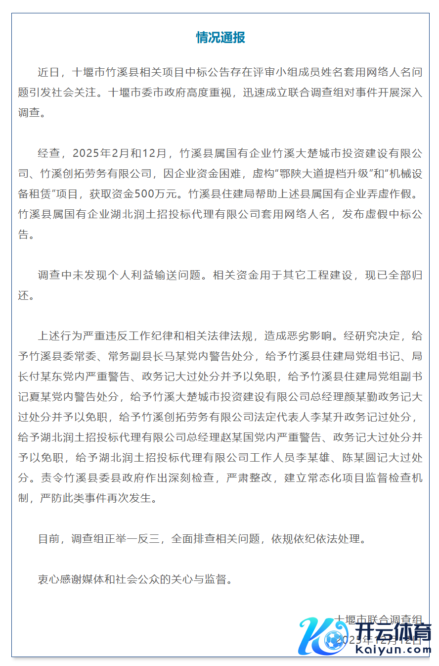 湖北十堰通报“最忙五东说念主组”事件:多东说念主被责罚并免职湖北十堰通报“最忙五东说念主组”事件:多东说念主被责罚并免职