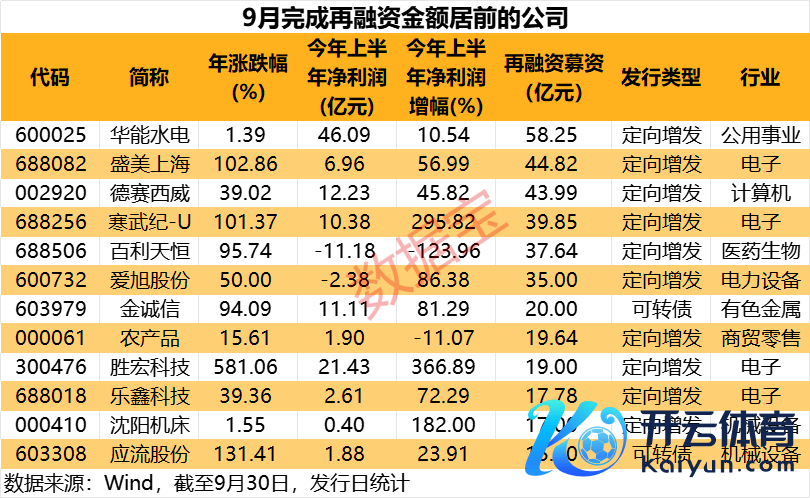 9月份A股再融资完成范畴环比增近30% 6家公司募资超35亿元9月份A股再融资完成范畴环比增近30% 6家公司募资超35亿元