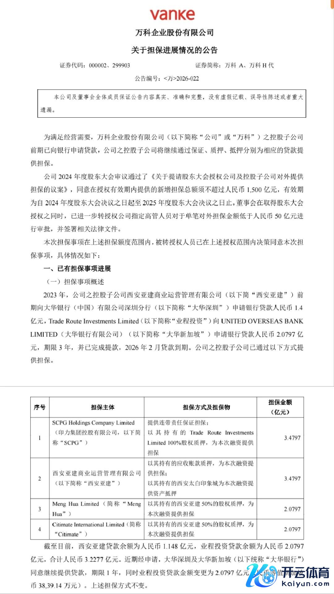 据万科公告,续贷担保方包括印力集团、西安亚建及谋划境外主体,通过保证、股权质押、财富典质等神志提供担保。
