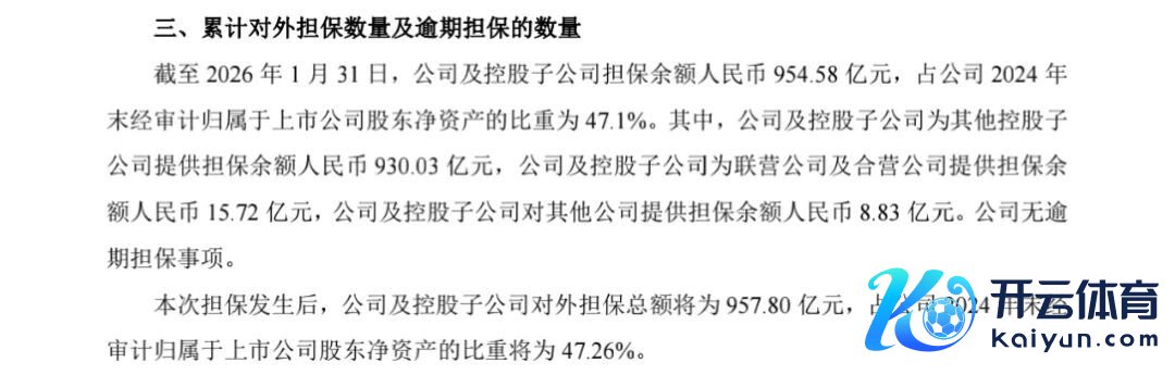 除了续贷告捷的音讯外,万科还在公告中流露了一组要道数据:摒弃2026年1月末,万科及控股子公司担保余额为954.58亿元,占2024年末经审计包摄于上市公司鼓动净财富的47.1%。
