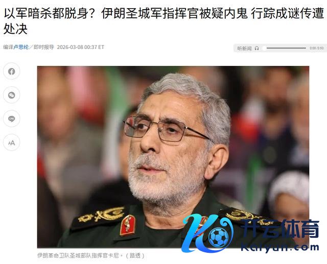 尽管有关音书尚未得到伊朗官刚直式证实,但卡尼身上蓄积的诸多疑窦,早已无法用偶而与交运说明,一场围绕伊朗核心高层的间谍疑团,正在中东接续扩散。