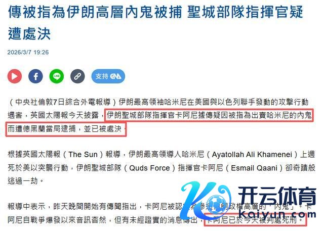 3月7日,英国《太阳报》跟进报说念,明确指出卡尼被认定为出卖哈梅内伊的内鬼,已被德黑兰当局逮捕并处决。