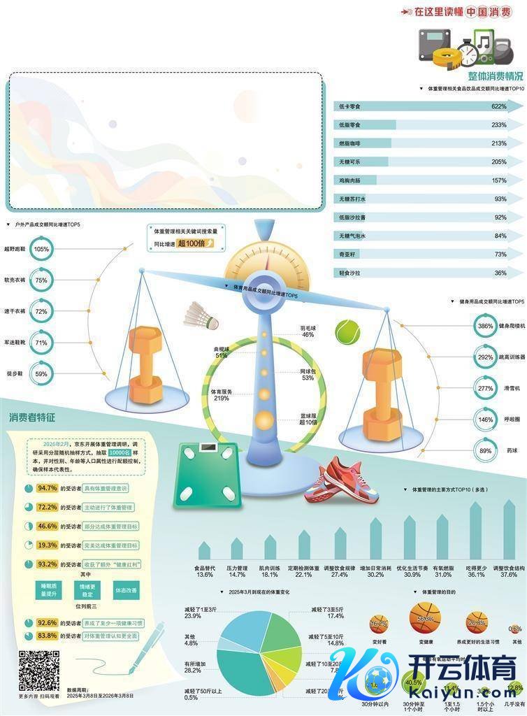 r从调研数据看,转机饮食结构、吃得更少、有氧燃脂、优化生存节拍、加多宽阔挥霍、转机饮食规矩、如期检测体重、肌肉测验、压力不竭、食物替代等是被受访者认同的体重不竭主要表情。这也意味着,除了饮食和畅通,个东谈主全体健康情景比单个数据更困难。体重不竭消费不仅限于“管住嘴”和“迈开腿”,睡觉质地、情谊情景、压力不竭、基础代谢等方面,已经有不小的市集空间。