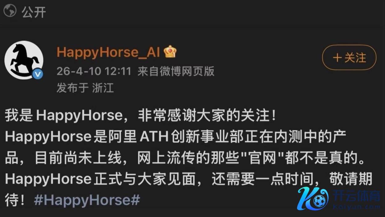 随后,认证为“HappyHorse_AI”的微博账号发布音书,认实在认了其身份。该博文称:“HappyHorse是阿里 ATH(Alibaba Token Hub)改进做事部正在内测中的产物,当今尚未上线。”同期,该账号教唆用户,当今网端淑传的所谓“官网”均为差错信息。
